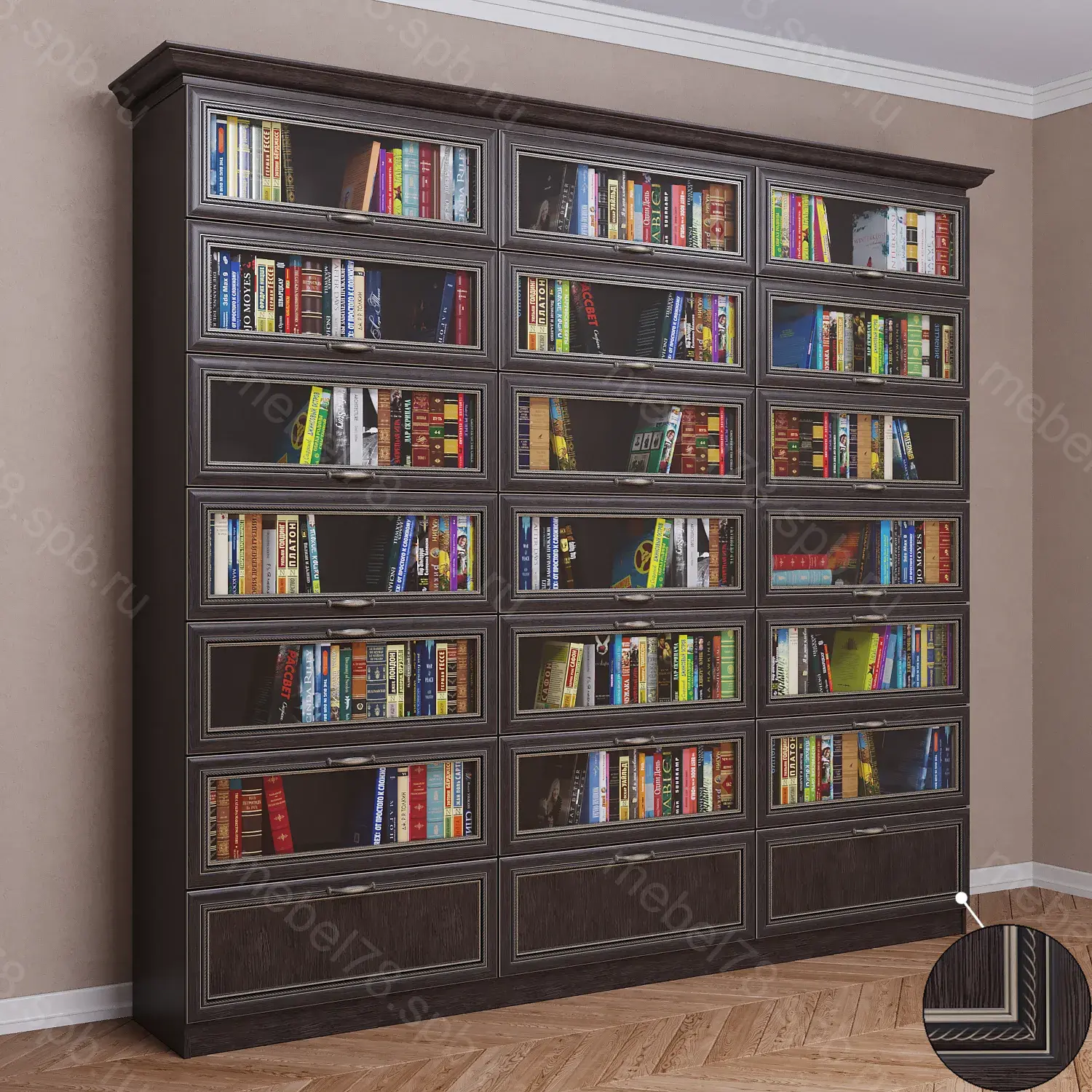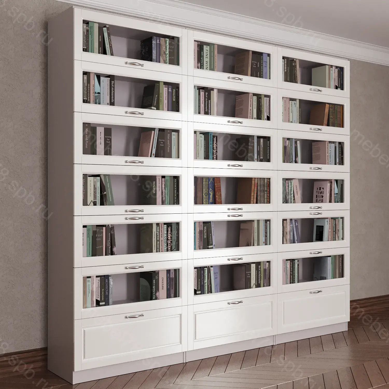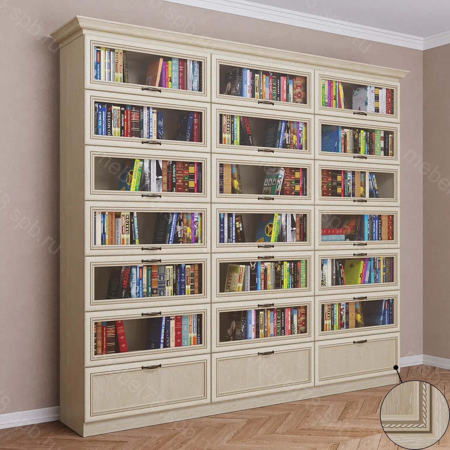 Варианты высоты шкафа 2100 мм, 2200 мм, 2300 мм, 2400 мм. Высота шкафа не влияет на стоимость.