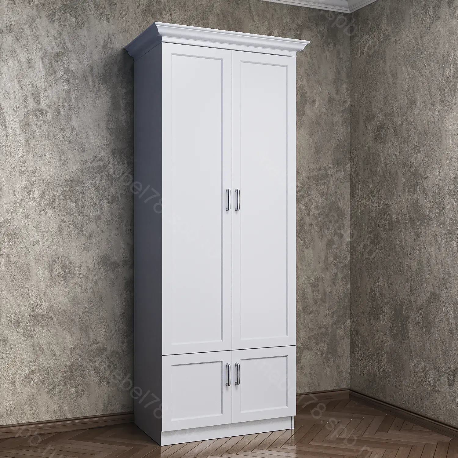 Варианты высоты шкафа 2100 мм, 2200 мм, 2300 мм, 2400 мм. Высота шкафа не влияет на стоимость.