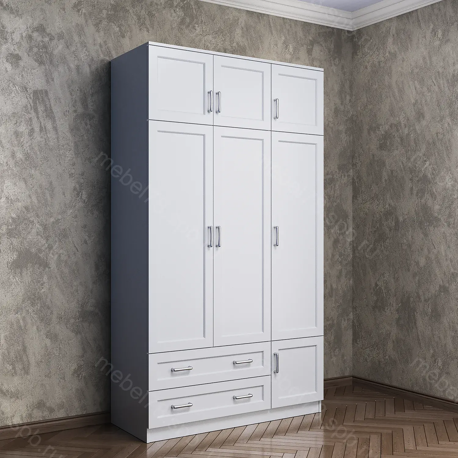 Варианты высоты шкафа 2100 мм, 2200 мм, 2300 мм, 2400 мм. Высота шкафа не влияет на стоимость.