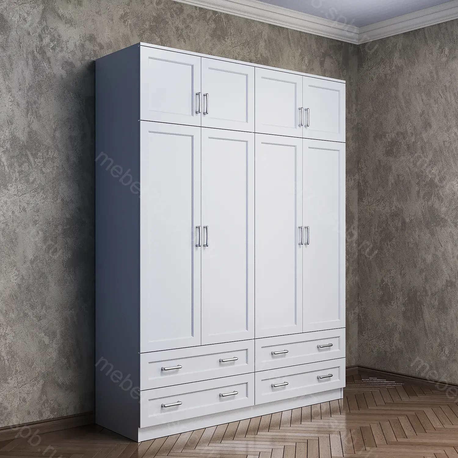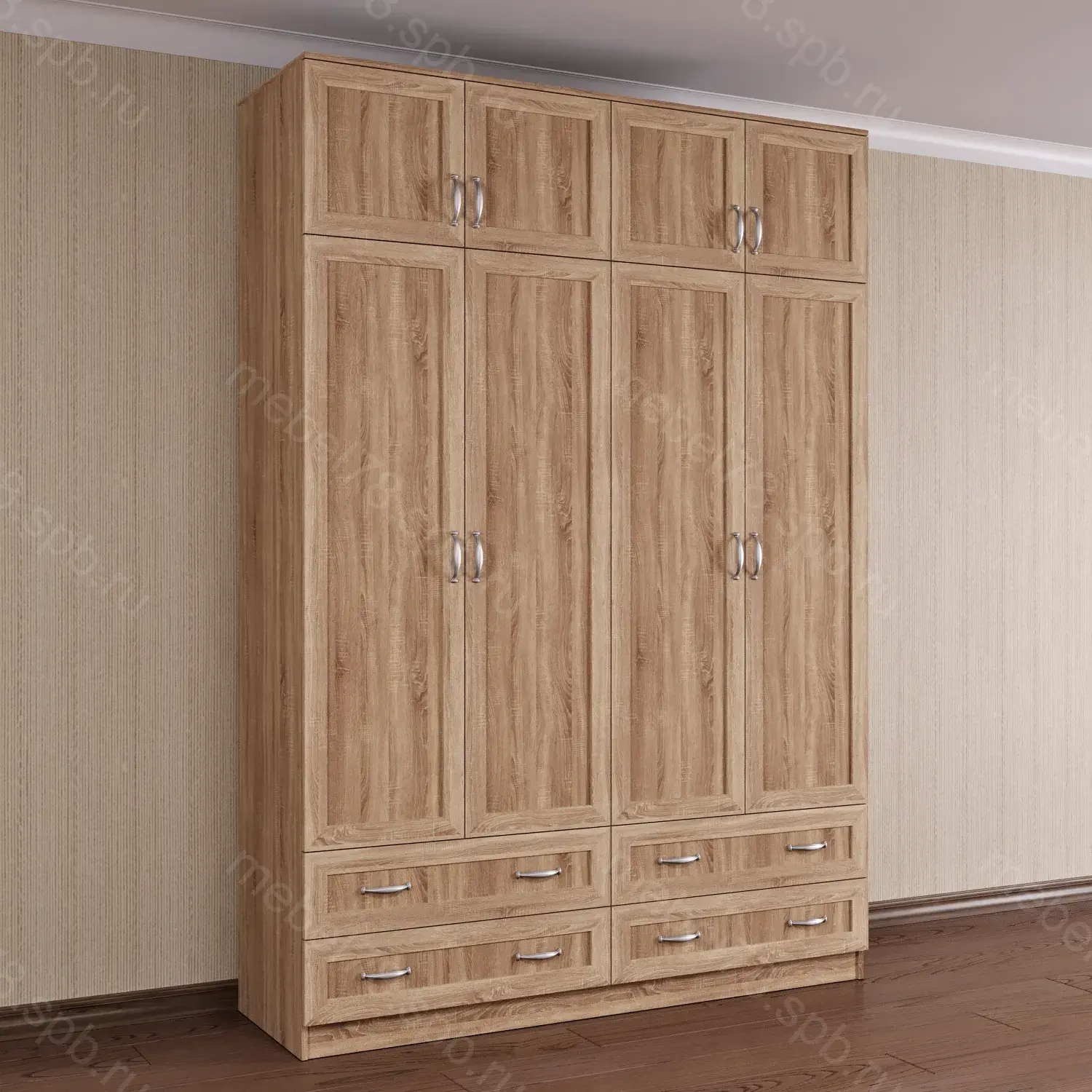 Варианты высоты шкафа 2100 мм, 2200 мм, 2300 мм, 2400 мм. Высота шкафа не влияет на стоимость.