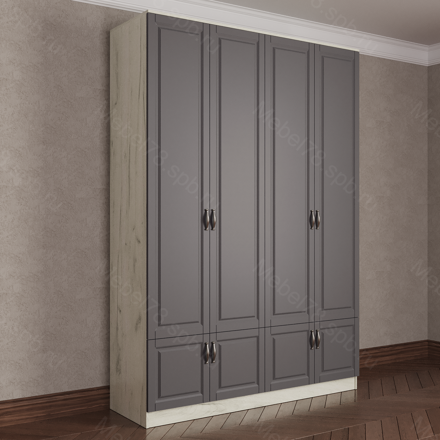 Варианты высоты шкафа 2100 мм, 2200 мм, 2300 мм, 2400 мм. Высота шкафа не влияет на стоимость.